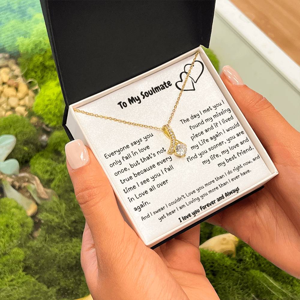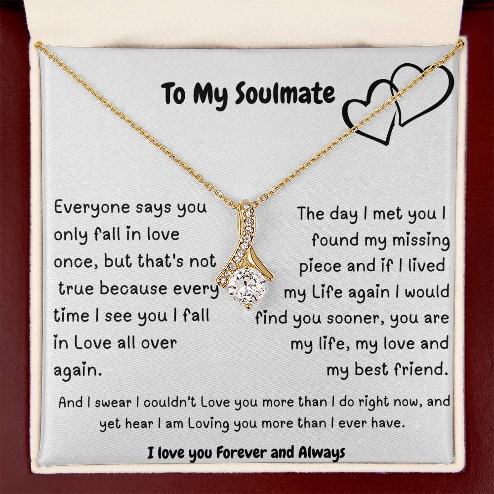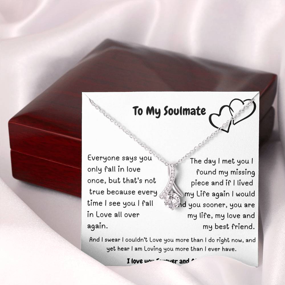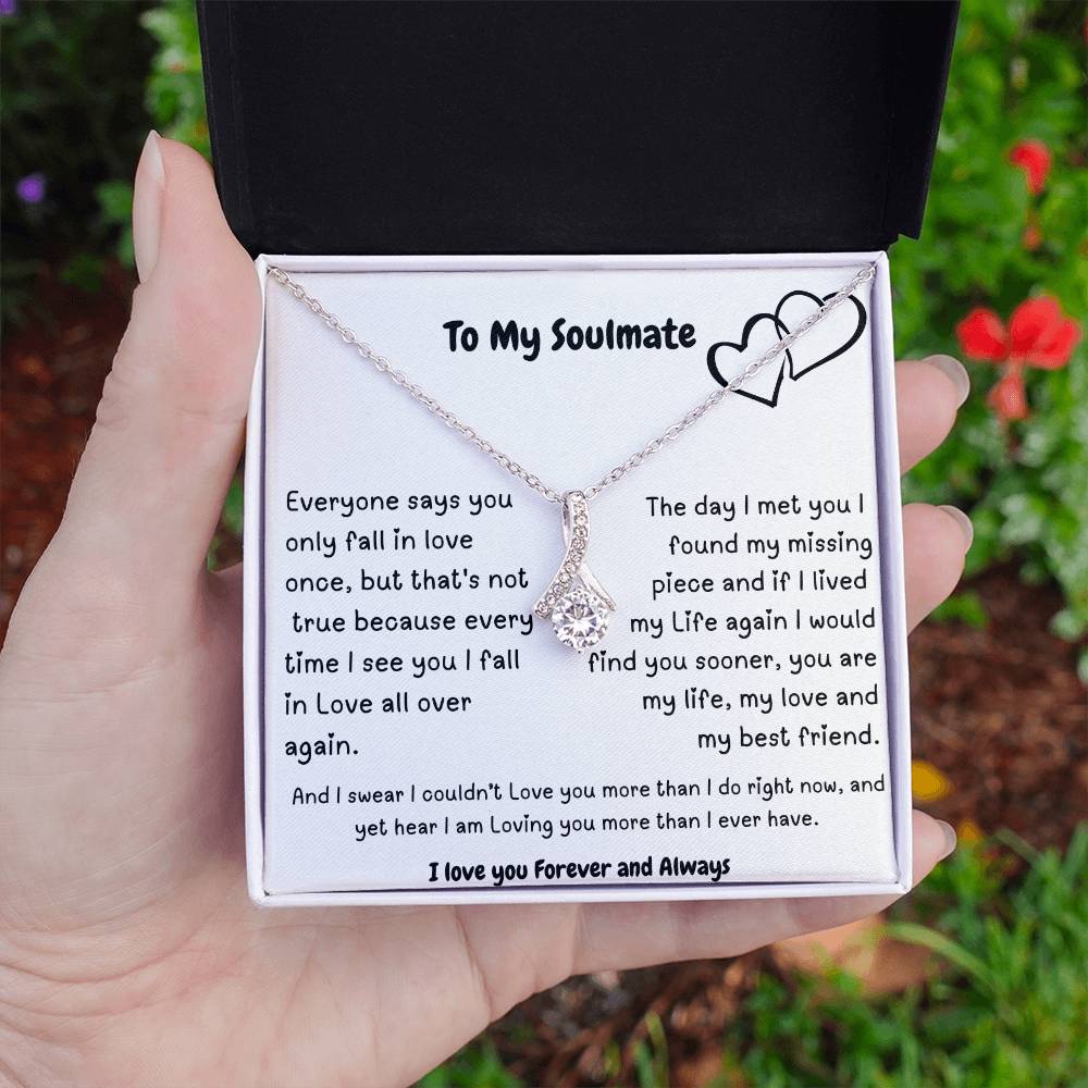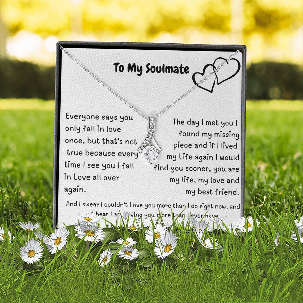 Imagine her reaction when she opens this stunning gift! The Alluring Beauty necklace features a petite ribbon shaped pendant that is sure to dazzle your special someone. Whether it's a birthday or anniversary, make sure to get her a gift she will love for years to come.