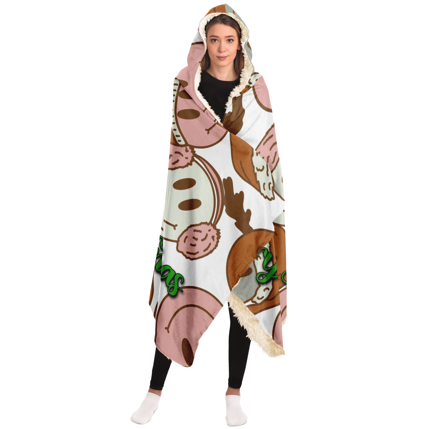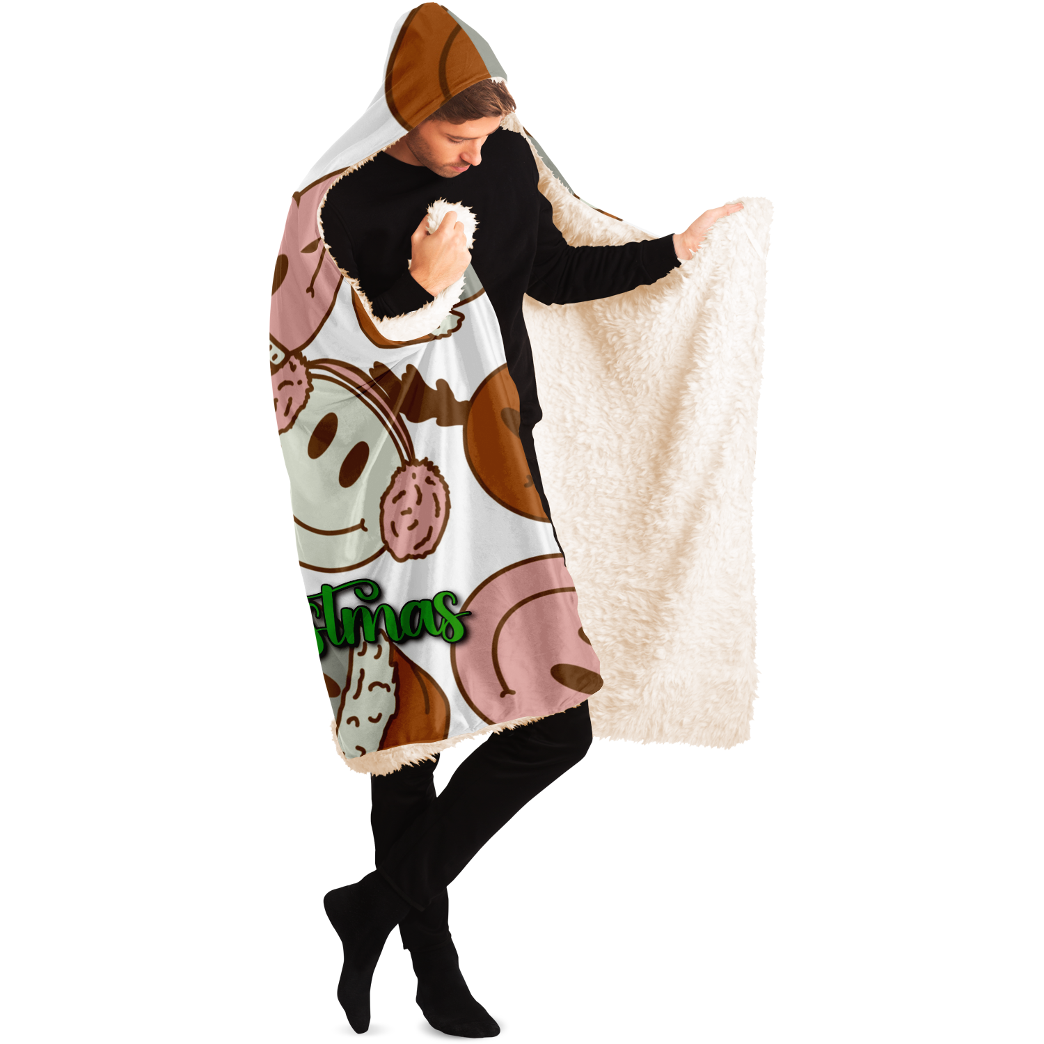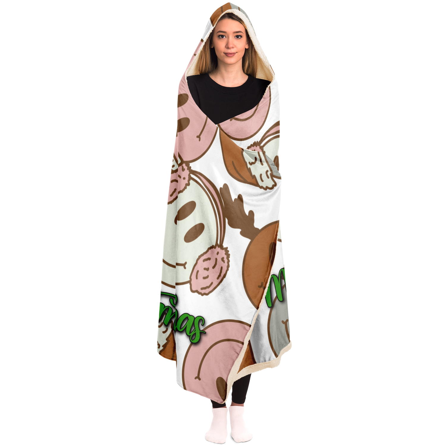 Merry Smiley Christmas Personalized Hooded Blanket.